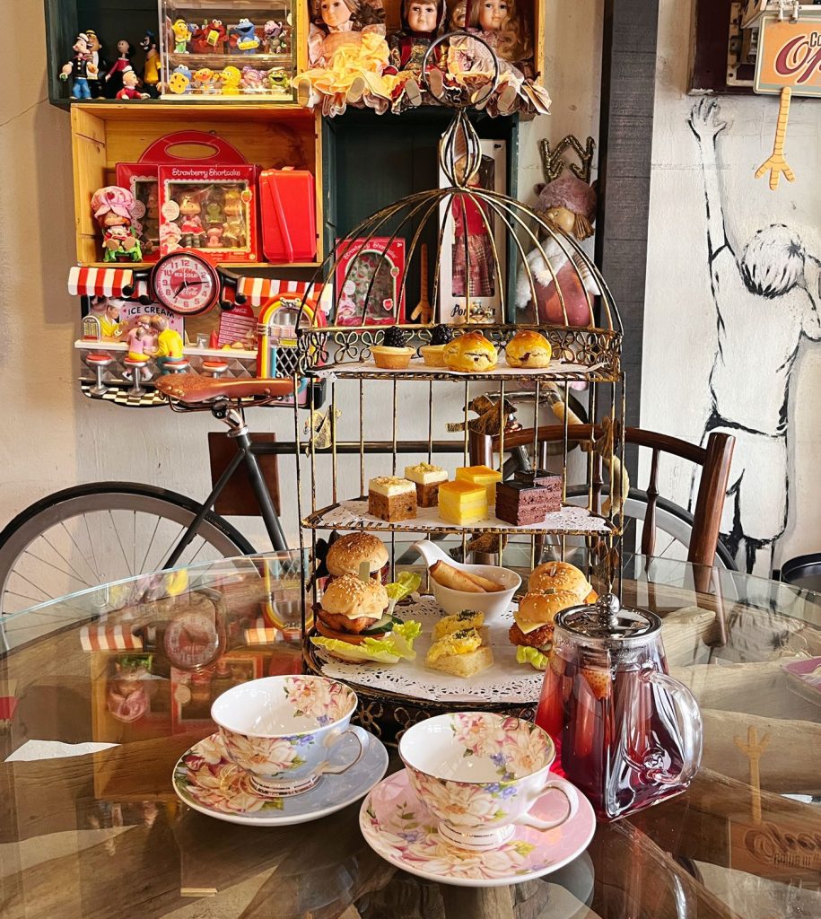 Embark on a delightful and elegant culinary experience that combines the best of savory and sweet treats, all beautifully presented on a tiered stand. Accompanied by a fragrant pot of tea.